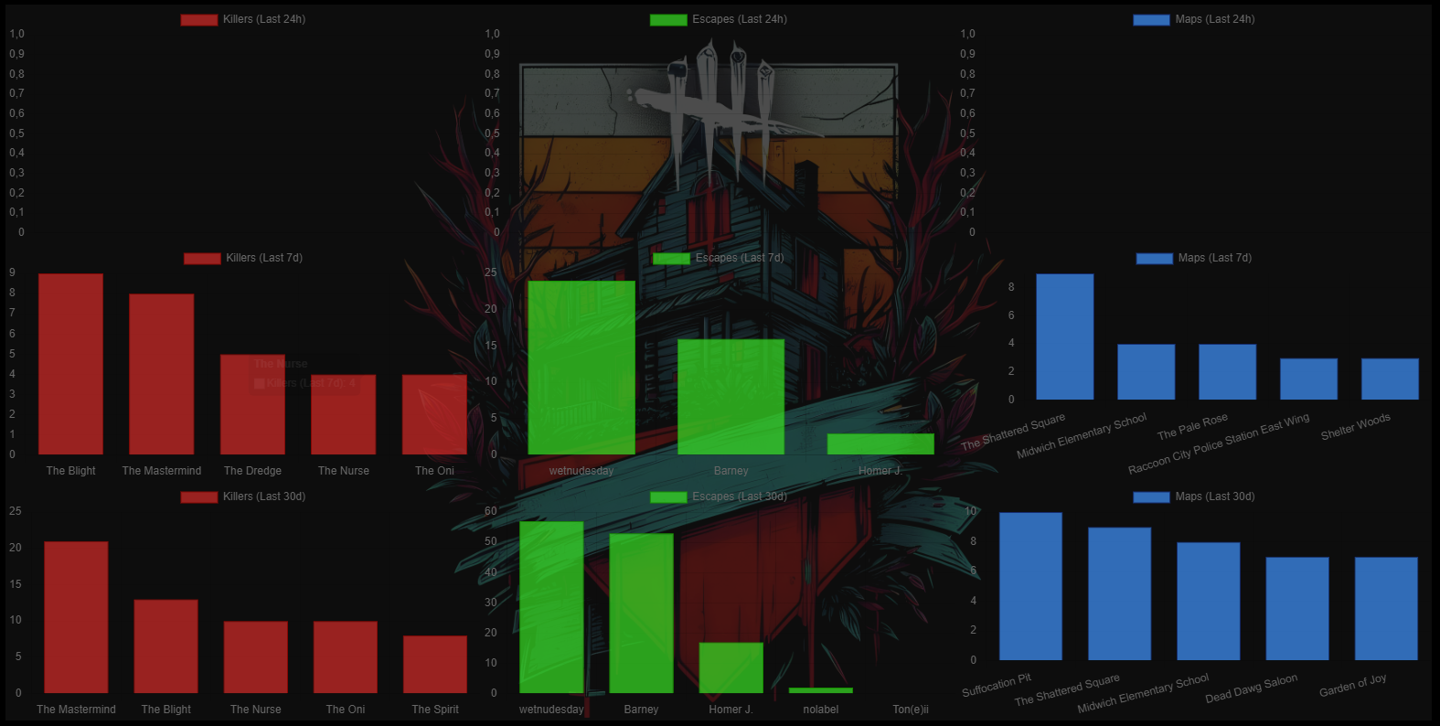 - Added percentages for each killer, escapes, and map on the 24h, 7d, and 30d Frontpage Stats