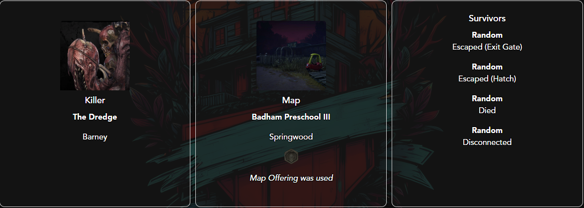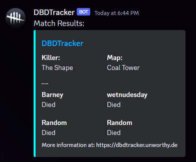 - Added a connection to a Discord webhook to post all match results in a dedicated DBD voice channel