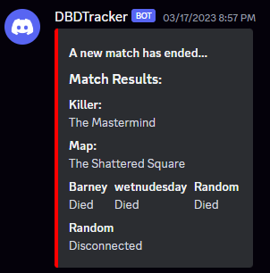 - Added a connection to a Discord webhook to post all match results in a dedicated DBD voice channel